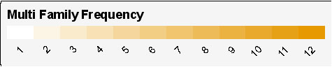 Multifamily Frequency is the absolute count of the number of times a place was selected as multifamily residential. Disclaimer: These maps are not intended to be a community vision, but are a direct representation of the community work sessions held in various communities throughout the Vision Dixie charrette process. |